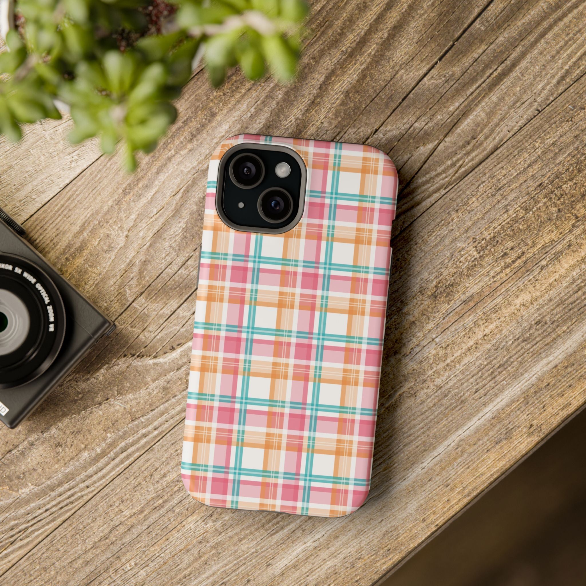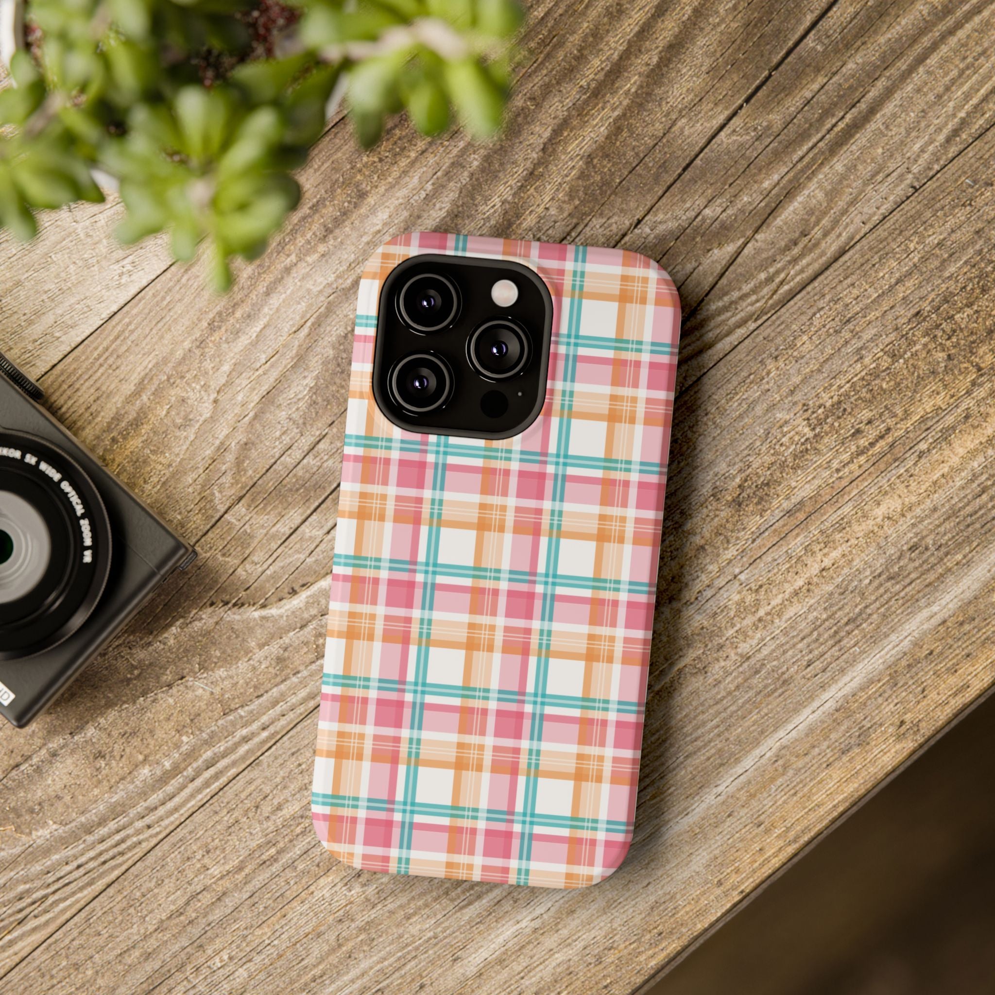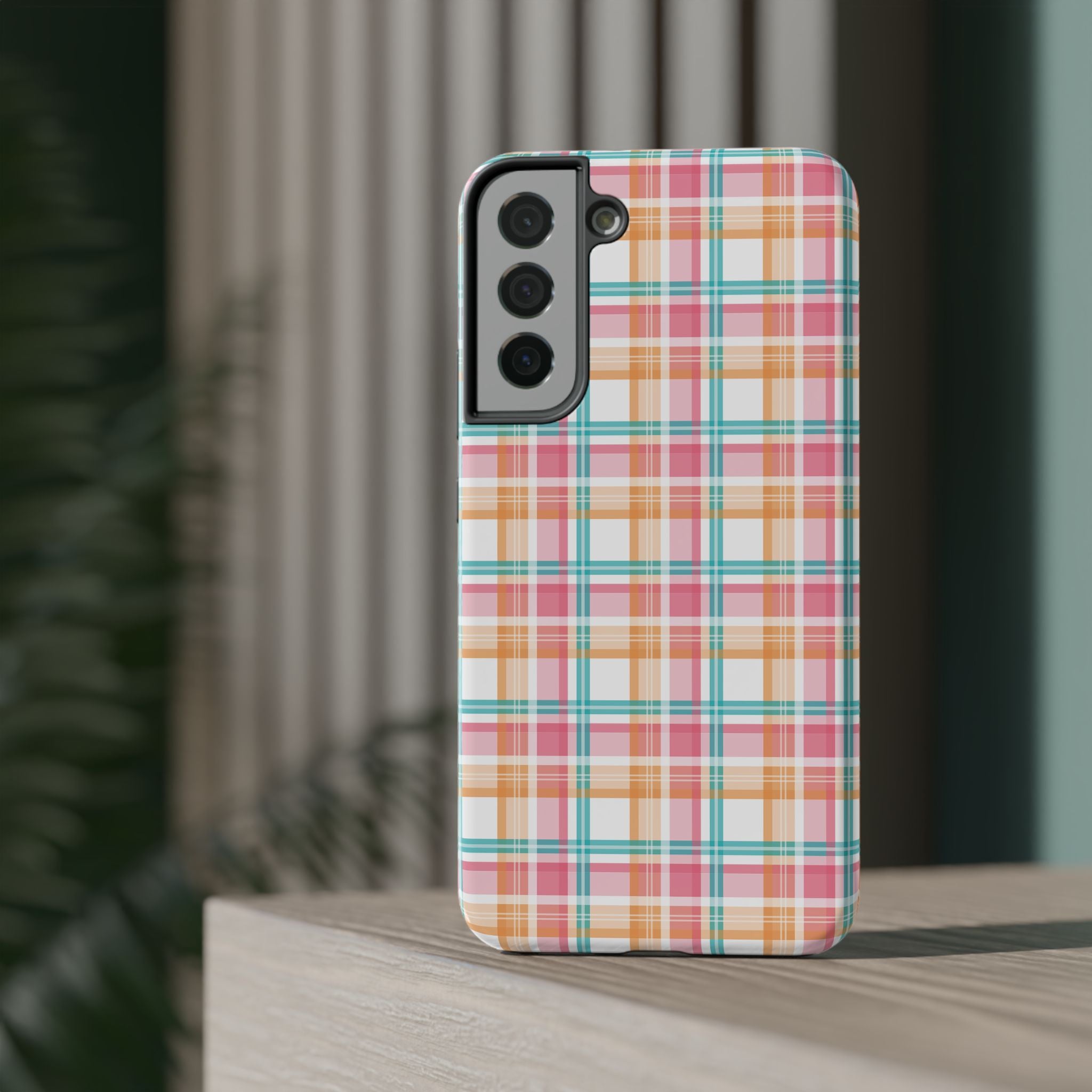 Impact-Resistant Phone Case - Summer Plaid Pink